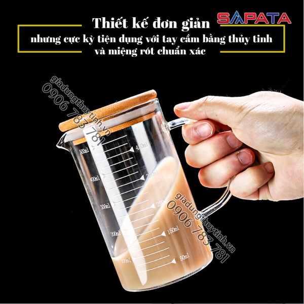 Ca lường thủy tinh có quai 500ml nắp tre - thương hiệu SAPATA - Việt Nam với các ưu điểm vượt trội